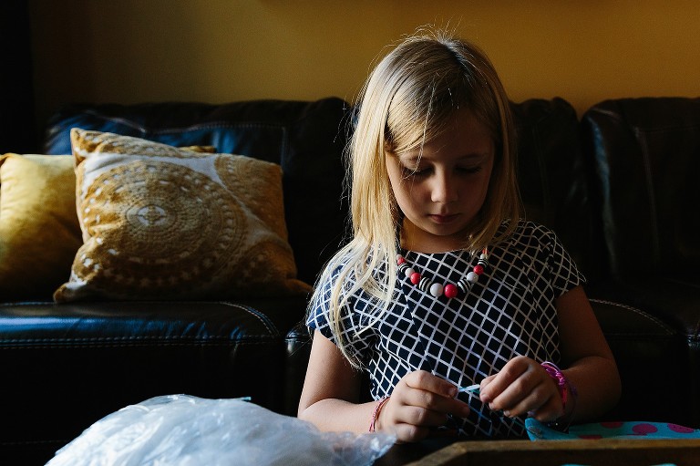 The rest of the morning is spent gathered in the living room among toys and games. Lydia finishes sewing her stuffed Sully, while Richard helps tie up the loose ends.  Laura and Audrey play Shopkins (new to me!) and put together a puzzle. Later the girls play a super fun game of double-decker Connect Four–a must have family game!